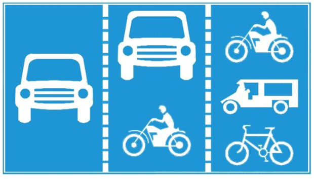- Vạch trắng nét liền: dành riêng cho một loại xe nhất định, các loại xe khác không được đi vào làn xe này;