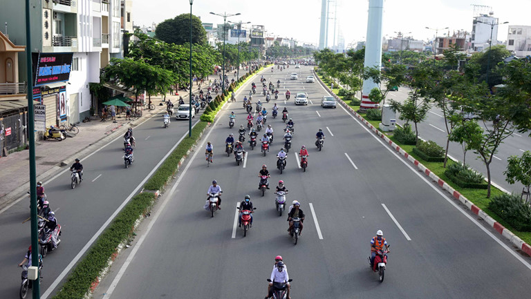 Khác với vạch kẻ vàng nét đứt, ở những đoạn đường có vạch kẻ vàng nét liền, xe không được lấn làn, không được đè lên vạch.