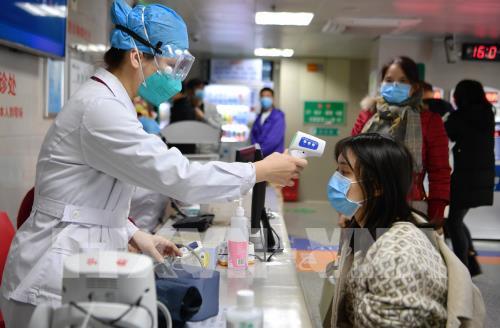 Nhân viên y tế Trung Quốc kiểm tra thân nhiệt một người dân tại bệnh viện ở Phúc Châu, thủ phủ tỉnh miền Đông Nam Phúc Kiến, ngày 31/1/2020. Ảnh: AFP/TTXVN