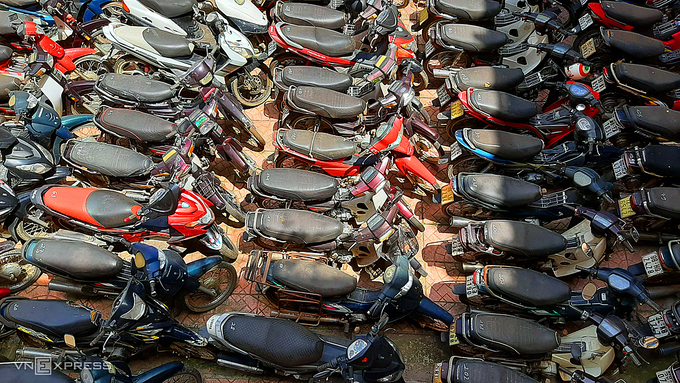 Hàng trăm xe vi phạm, trong đó nhiều xe không có giấy tờ, chưa sang tên bị chủ nhân bỏ lại ở trụ sở phòng CSGT, Công an tỉnh Bắc Giang.